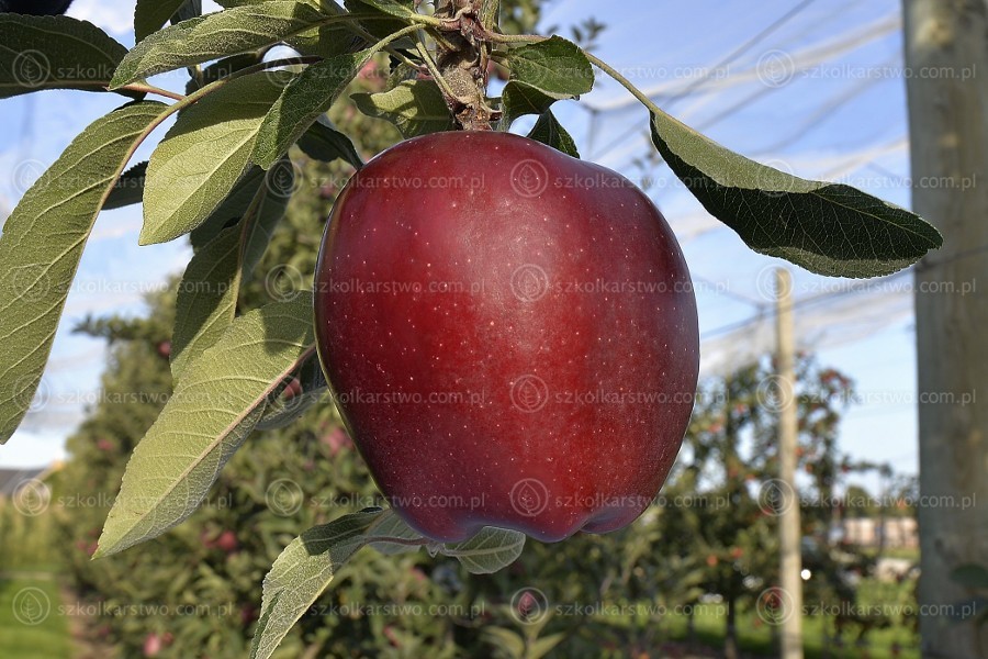Twarde jabłko to na pewno. Podatne na mączniaka jabłoni to na pewno. Czerwone jabłko to na pewno. Długo się przechowuje to na pewno. Takie nie za duże jabłko, nie będzie przerostów to...
